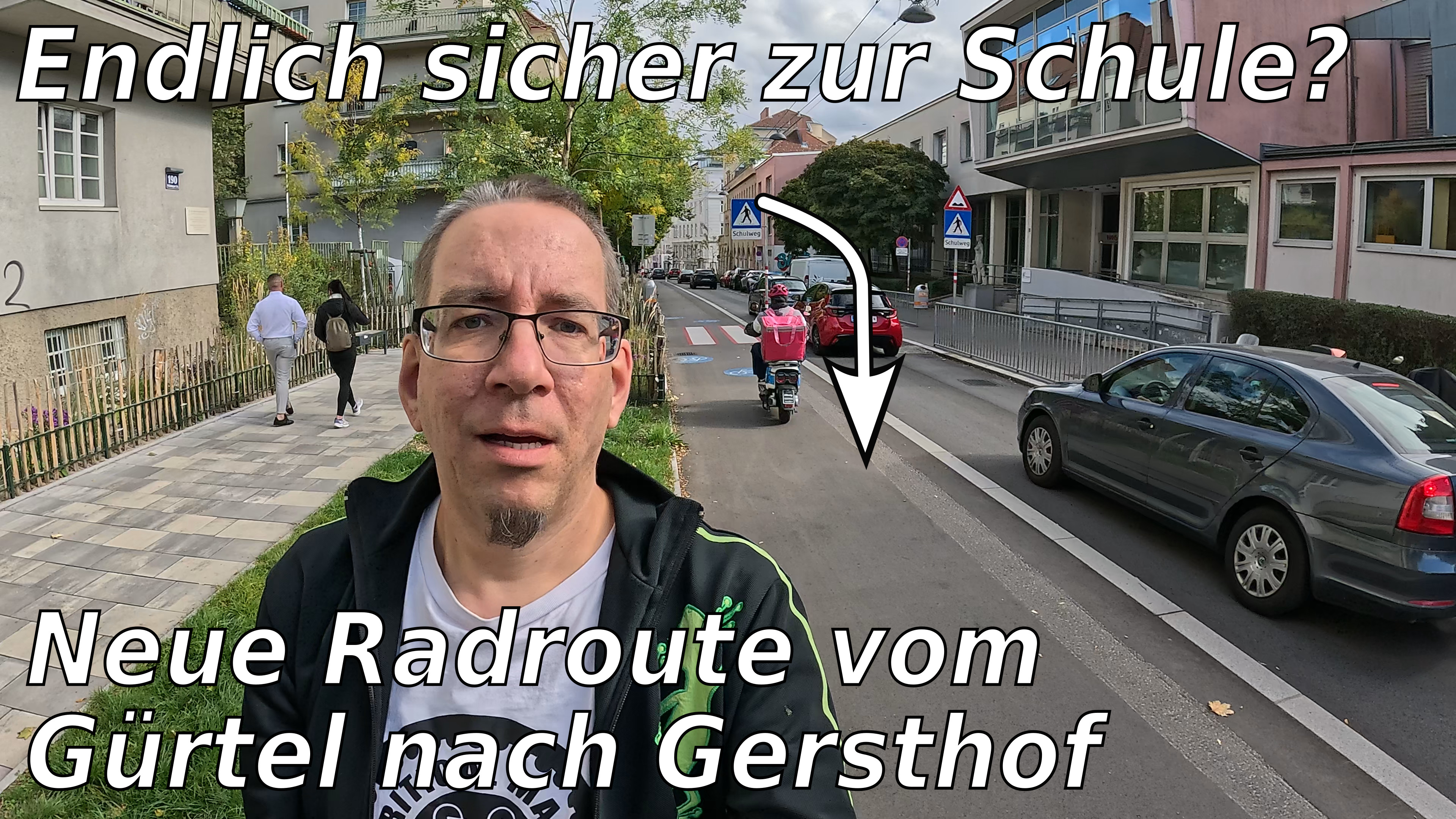 Der längs führende Kfz-Verkehr wurde durch zwei autofreie Bereiche unterbrochen, einerseits hier beim Kutschkermarkt, wo wir durch eine für das Radfahren geöffnete Fußgehyzone fahren, andererseits bei einer Volksschule, zu der wir etwas später kommen.